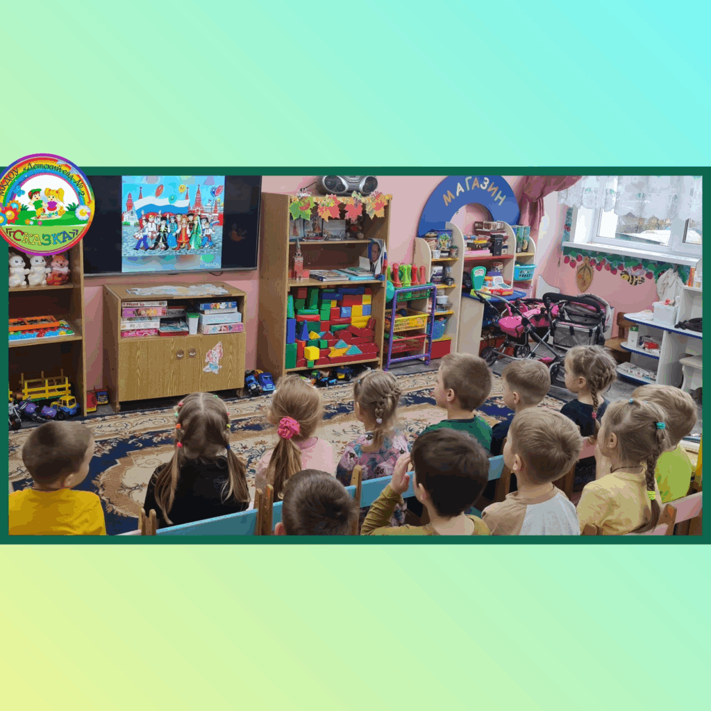 👫Ребята в игровой форме познакомились с некоторыми народами, населяющими Россию, узнали, что значит «единство», закрепили знания о государственных символах страны – флаге, гербе и гимне.